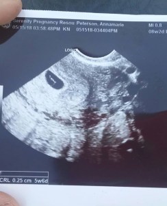 The sweet nurse couldn’t find a baby either, until she switched from using a doppler to a transvaginal wand. Baby was tiny, microscopic. 5 weeks, 6 days, she said. I mentally corrected it to 5 weeks and 4 days, because I knew when I’d ovulated, but close enough. We were so relieved. Maybe this was really happening after all.